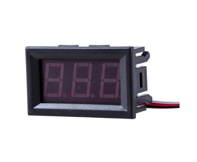 Size: approx 46 x 29 x 22 mm Precision: 1% Display Mode: 3 digits Range: DC 0V-30V Feed input range: DC 4,5-30V Operating Current: less than 20mA Display color: red