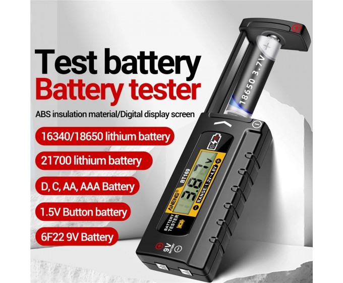 BT169 can measure battery category: AAA, AA, 9V batteries, button batteries, 21700 lithium batteries, 18650 lithium batteries, 16340 lithium batteries