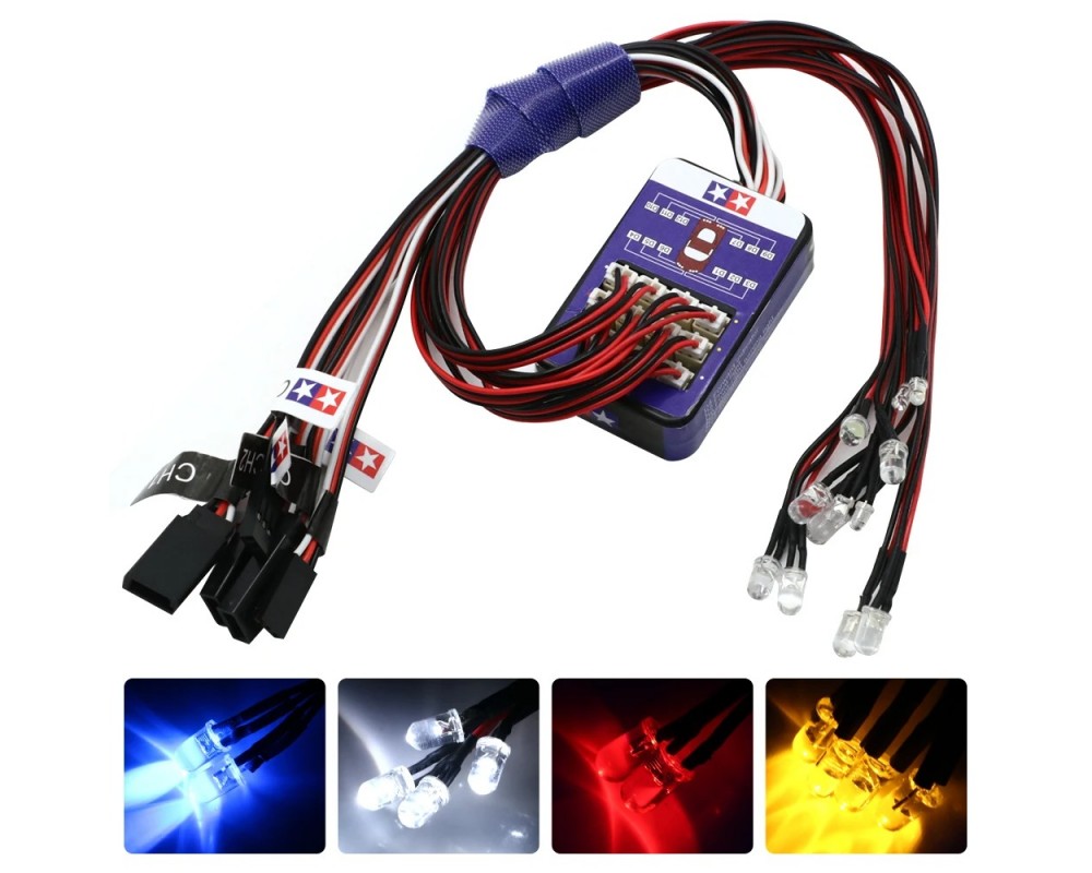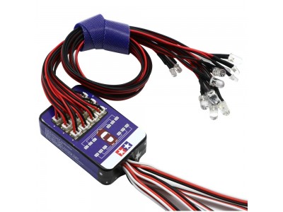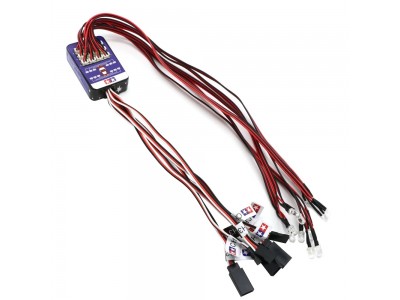 This 12 LED Lighting System Kit is suitable for 1/10 RC cars. It have four colors lights, include white headlights, blue taillights, red brake lights and yellow turn lights. With improved circuit board, it can support High-V receiver and normal receiver. And one set of lights can be controlled by the transmitter.